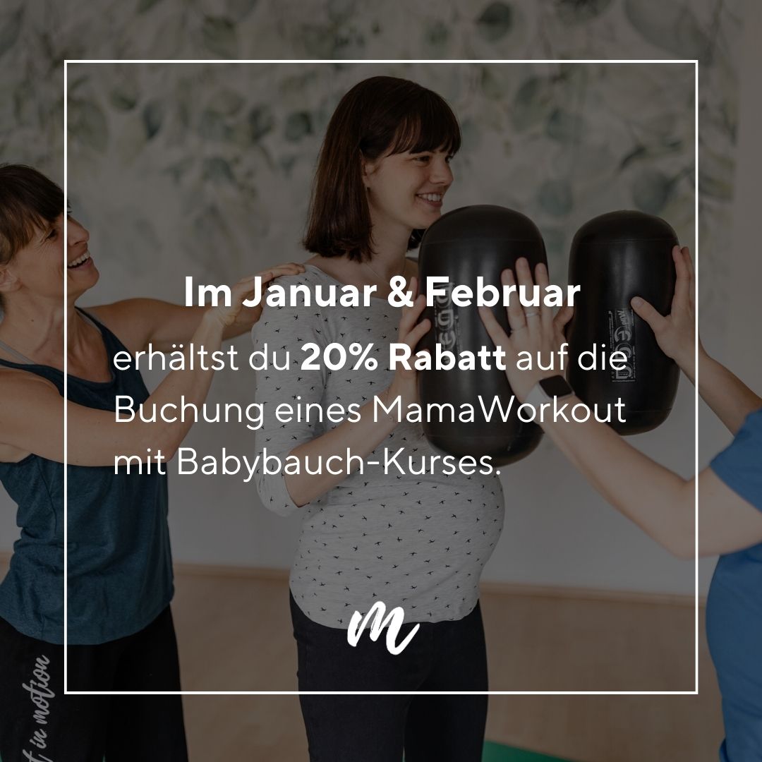 Im Januar und Februar erhälst du 20% Rabatt auf die Buchung eines MamaWorkout mit Babybauch-Kurses 🤰🏻